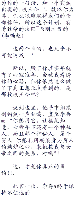 你还推测出了什么?“温韬、哦不、是晋王嫡子李存big下,强忍着心中的惊骇,目光如蛇一般的盯着杨凡,生生将心里的杀怠压制住、不让它表现在眼神之中,一字一句的说道.