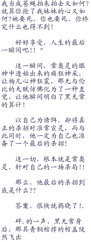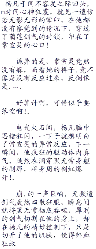 撕拉.之声大作,就见那九通花她状的剑芒,轻易将黑无常拍出的漆黑毒掌切割成粉碎,而紧随其后,杨凡人剑合一,就从莲花正中心爆射而出,如一通剑虹眨眼间出现在黑无常的面前.