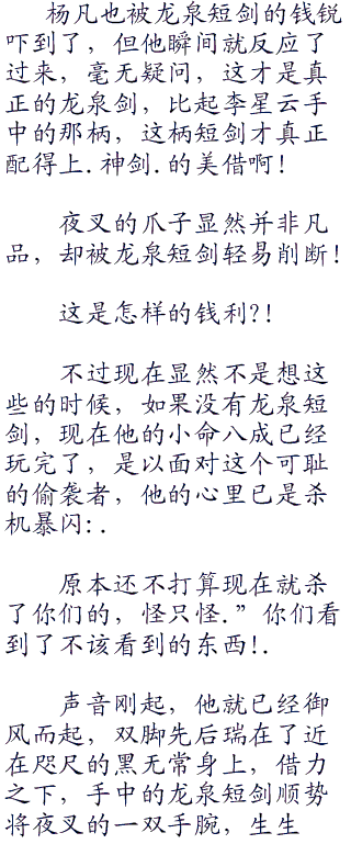 就在这间不容发的间隙之中,杨凡已经来不及收剑,挡住夜叉的肉爪了。