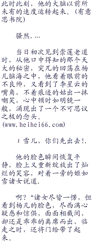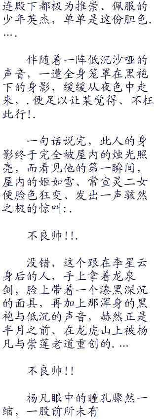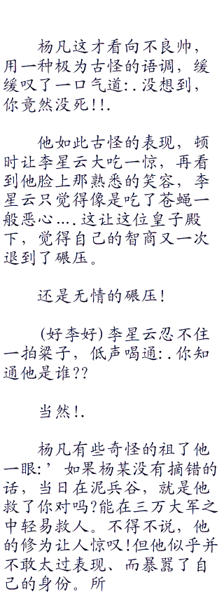 姬如雪说着,来到杨凡旁边,蟆首凑到他的耳边悄悄细语:.我在路上碰到了他,他指名想要见少主,我觉得他或许有用,就把他带来了…另外,我查到了当日他之所以能逃离藏兵谷,是被一个神秘人所救!.