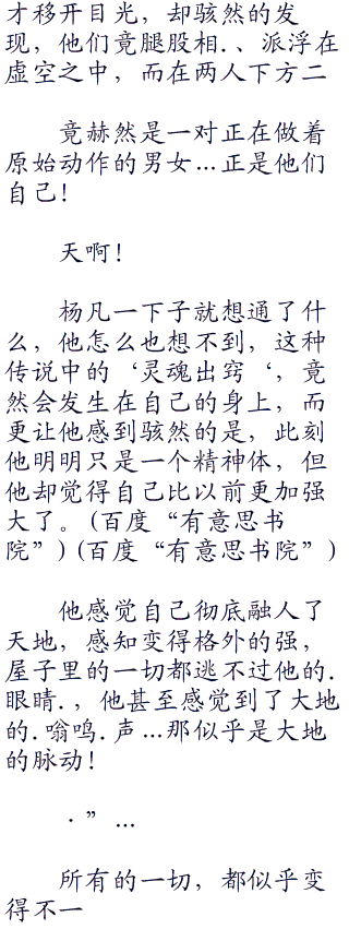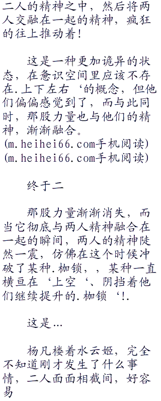 在他们的感应中,二人竟然全都变成了精神体,在虚空之中交融着。