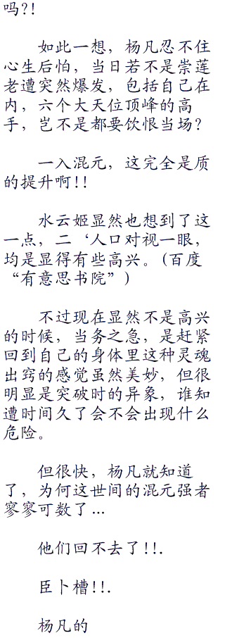 熟悉的轰鸣声毫无预兆的出现,但却比上次更加震撼,杨凡甚至觉得自己的身体,在这一刹那都变成了粉碎,整个虚空之间只有自己的精神还存在着,而在他身下的水云姬,也是同样的状态。
