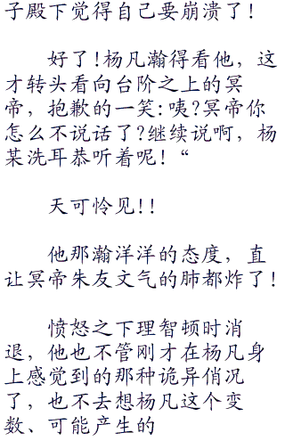 冥帝可千万不要开玩笑!杨凡很无的看着他,一边牵着陆林轩的小手,一边缓步走下台阶,向李星云等人走去:冥帝的抓父壮举,早已经被殿下看的渭渭楚楚,你这么冤枉我,我可是会生气的哦三二零