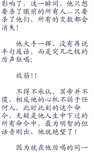 冥帝更是第一时间想到了焦兰殿内的变故,顿时面色变得阴沉之极,目光就像是一直饥极了的野兽,死死的盯着杨凡:是你下的毒!杀了我的父皇!!’