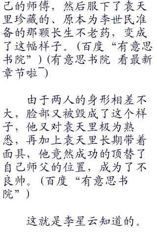 在动漫里,李星云除了知遭他的名字叫.袁天里.之外,对他根本一无所知!