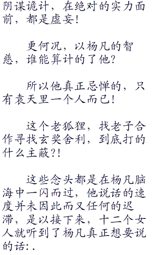 而还没被杨凡收入后宫的其余诸女,也是面泛红光,暗地里对视一眼后,齐齐低下头去,不敢与杨凡的目光对视.