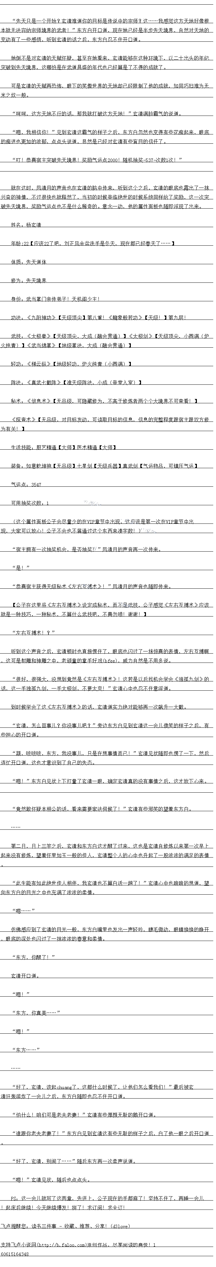 叮!恭喜宿主突破先天境界!奖励气运点2000!随机抽奖次数1次!“