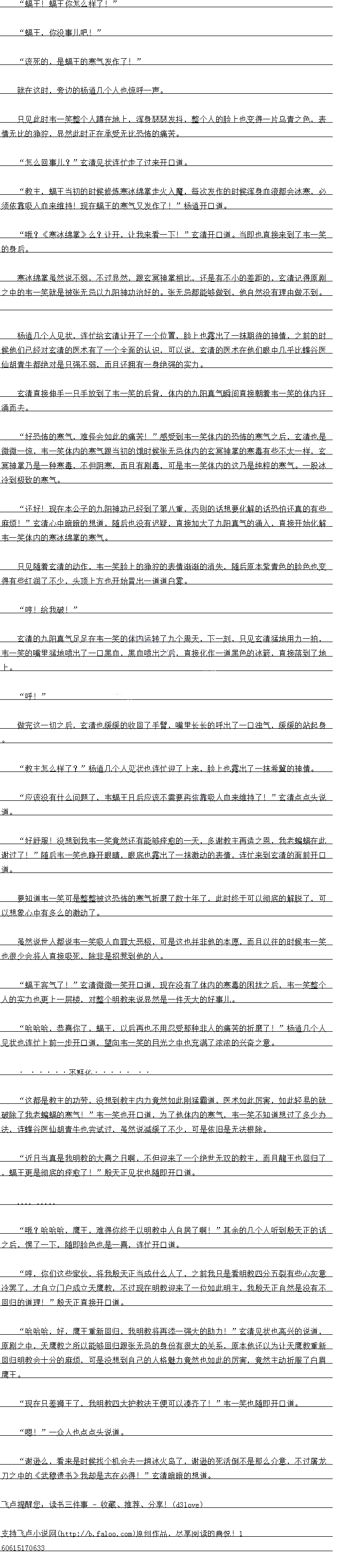 好舒服!没想到我韦一笑境然还有能够痊愈的一大,多谢教主再造之恩,我老蝙蝠在此