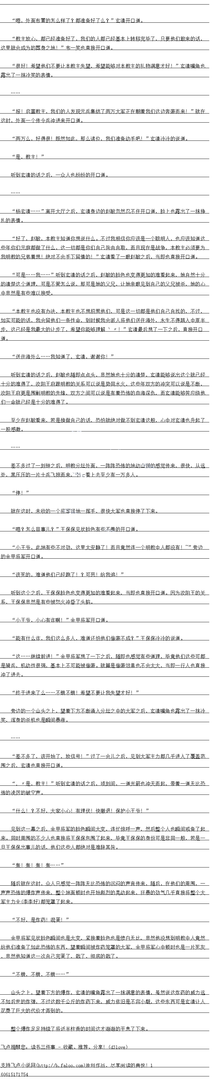 报:启禁教主,找我们的人发现元兵集结了两万大车正在朝看我们这边奔袭血来!“就在