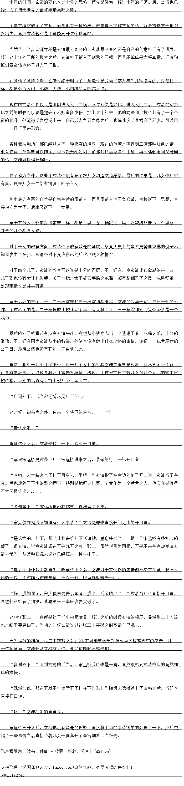 全十另外的一个儿子,二子杨震乾相一子杨震坤都继承了玄清的武学大赋,资质分的来