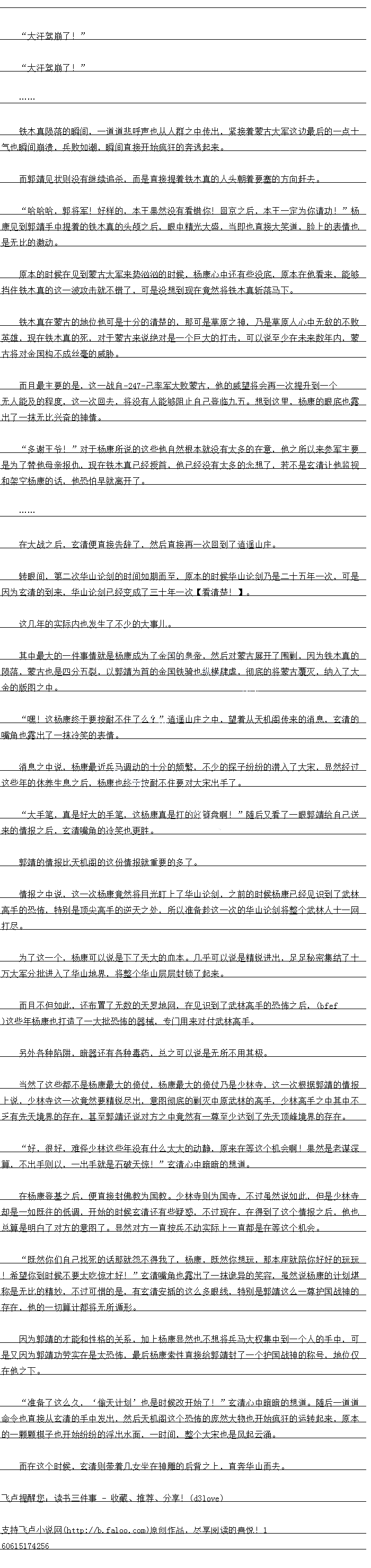 陨落,蒙古也是四分五裂,以郭靖为百的金国铁骑也纵横肆虐,彻底的将蒙古覆灭,纳入了大