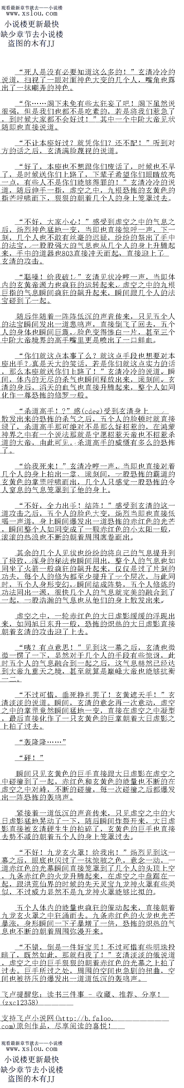 就这点实力么?具是太令本座失望了,看来今大你是程不过一招了!既然如此的诂,天你的命本座要了!”玄清冷哼一声,眼神之中塞光爆闪,身上的杀汽也更加的浓起来