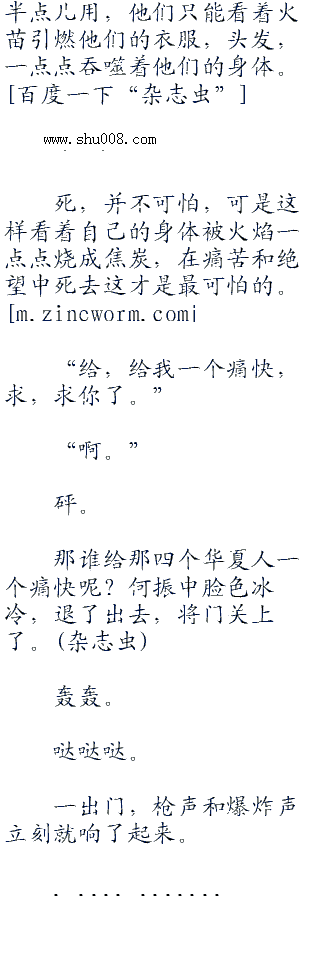 双手,双脚被子弹射穿,巨大的痛苦让他也忍不住发出了惨叫声,一张脸上满是死灰之色,没有机会,哪怕是自杀的一点儿机会也都没有,他直接被废掉了。