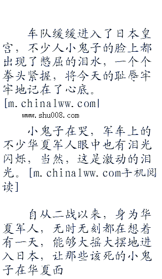 消息一出,整个日本再一次哗然,十余万东京市民第一时间朝着皇宫拥挤而去,将沿途挤了个水泄不通,只是,无论男女老少,每一个小鬼子的脸上都带着无尽的