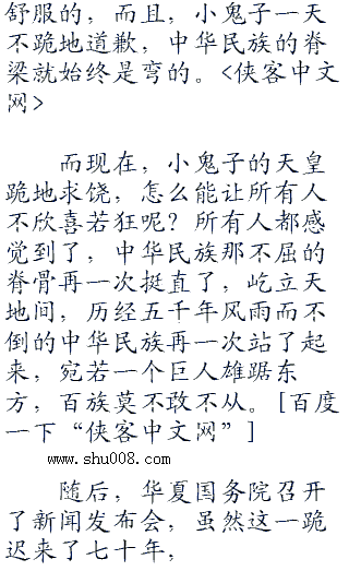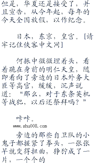 华夏则全国欢庆,每个人都有种扬眉吐气的感觉,虽然华夏一天一天强大了,但是小日本就像是一块鱼刺哽在华夏的咽喉,不处理掉,总是不