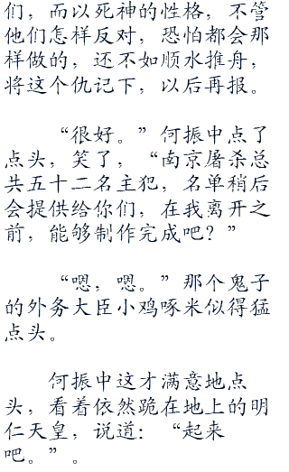 特别是看见何振中那高高在上,一幅审问奴隶,犯人一样架势,不少人小鬼子都咬碎了牙齿,脸上泪水长流,心中愤怒之情更甚,对何振中,乃至对华夏的恨意达到了一个巅/峰。