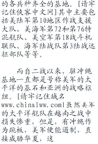 冲绳这个美军基地对华夏的威胁可见一斑。