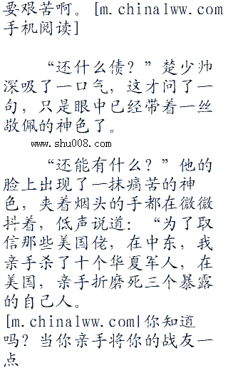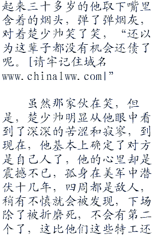 什么?轻微的声音响起,让楚少帅的身体也忍不住一抖,眼中出现了一抹惊骇之色,这,这是中文?可那个家伙明明就不是华“二八七”夏人啊?看起来高高大大的,也不是黄皮肤黑眼睛啊。