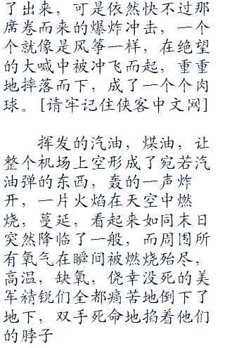 “**。”航空煤油喷洒而来,让那个美军中校吼了一声就被冲击到了地上,说不出来话来。
