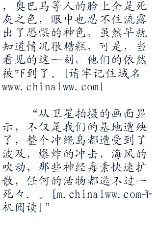 只是声音显得有气无力,连司令部的高官都失去了联系,基地还会有人活下来吗?只是,那些美国政府的高层一个个心里没有半点儿底,那可是大规模杀伤性的生化武器啊。