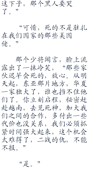 又是一阵急促的脚步声响起,一个美军情报局的官员快步走了进来,满脸苍白,手都在不断地抖着,脸上的冷汗更是如雨点一样,不断滴落而下。
