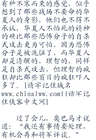 足足了五分钟,奥巴马才冷笑了起来,说道:“如果何将军不怕惹上那群疯子,尽管派部队过去就是了。”不管怎么说,在中东地区,美国可是常年驻扎十几万大军,经营了这么多年,那地位不是谁都能挑衅的,这些华夏人想要过去找死,他怎么会介意呢?