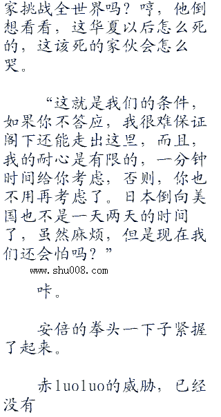 坐在椅子上,安倍晋三显得很是坐立不安的,虽然洗了好几遍了,但是,他依然能够闻见身上散发出来的臭味儿,特别是那些该死的华夏人竟然说没合适的衣服,让他依然穿着那件女装,该死的,这个仇,他算是记下了。