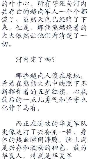 火光,烟尘不断地升腾而起,全美式装备,号称越军三大王牌之一的153旅此刻就像是无助的小孩子一样,哭喊着,四处奔逃着,在炮火中被炸的血肉模糊,四分五裂。随着华夏轰六编队的到来,那些越南精锐们再也没有任何的勇气继续下去了,一个个扔掉了枪,跪在地上,高举着双手,满脸的惊恐之色,更是如筛子一样抖个不停。