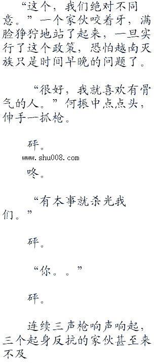 一时之间,那些越南人的脸色都阴沉到了极点,这年头谁不知道,没有军队,手中没有枪,那绝对就只能任人鱼肉啊,他也没有想到,何振中竟然给他们越南来了个这样绝户计,一旦同意了,那以后,除了跟在华夏身后,那他们可是没有半点儿选择了,再加上整个越南禁枪,那以后他们拿什么去去推翻华夏人的统治?
