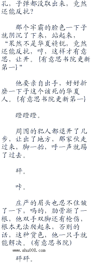 牢房中的范人都为了过来,满脸狰狞的冷笑,他们都属于政治犯,这在独裁统治的国家很常见,这辈子都不可能离开这个地下核基地的,对于他们来说,能活一天是一天,最大的快乐就是相互折磨,发泄。首发