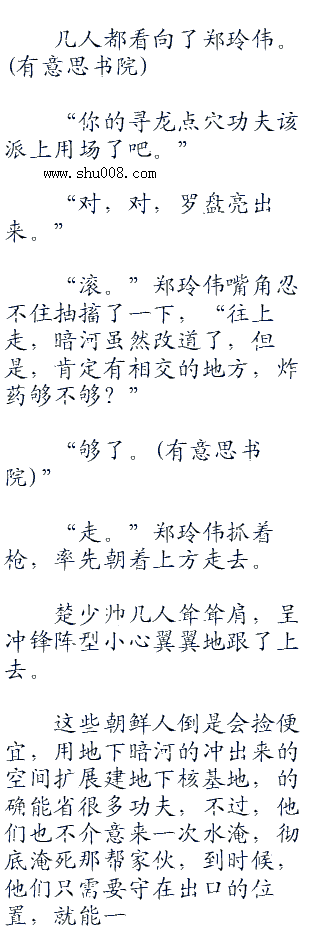 楚少帅,郑玲伟几人也都跳了下去,掏出了狼眼手电,观察着四周。