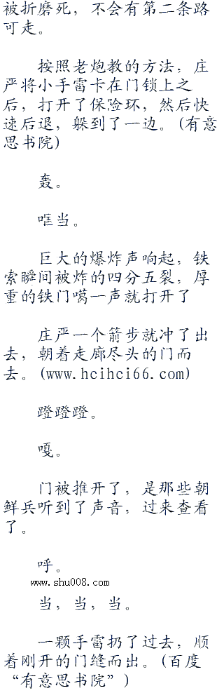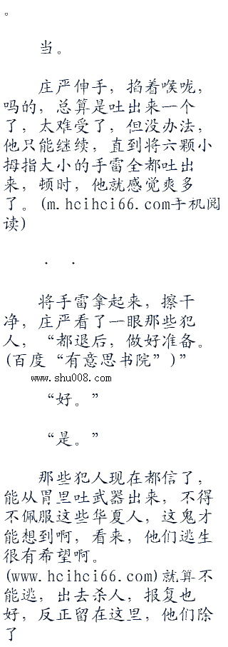 “那就好。”庄严点点头,“等会放出所有人,告诉他们,想要活命,先破坏这里,然后往外逃,至于你们想要招谁报仇,想要强.奸谁之类的,自己看着办。”