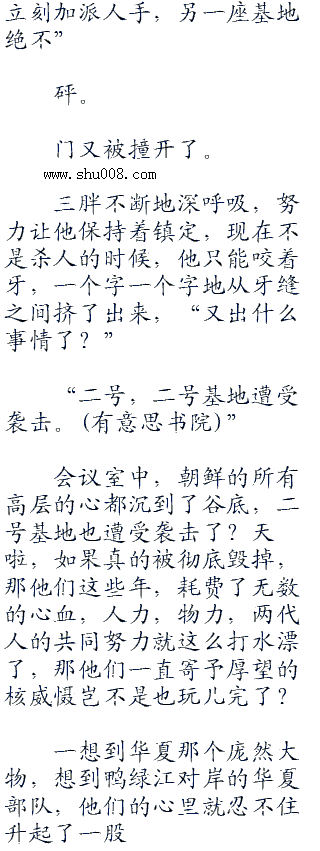 匆忙的脚步声响起,接着砰一声,金三胖子的深处地下几十米深的房间门就被人撞开了,一个他的贴身警卫冲了进来。