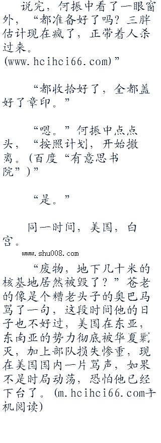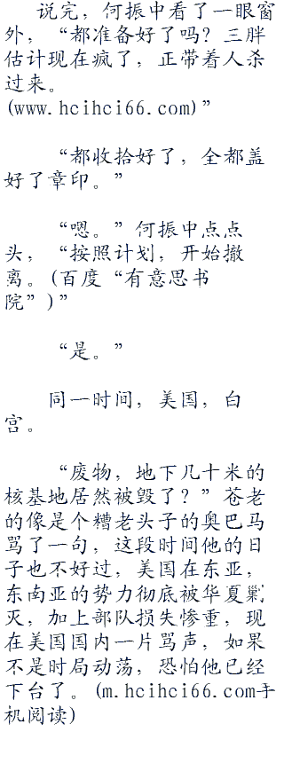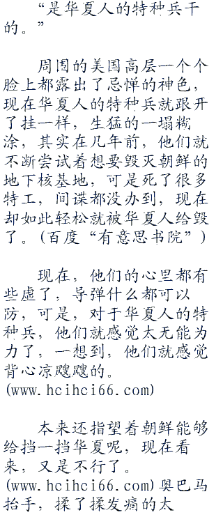 其他的人也都在感叹,说实话,他们心里根本没有抱多大的希望,地下核基地肯定是防线一重又一重,守卫森严,想要毁掉,谈何容易?甚至,他们都在劝何振中离开平壤这个危险的地方,尽早回国,可是何振中却固执地依然要在这里等。