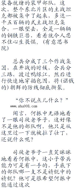 何振中无奈,只能沉声说道:”对付朝鲜,最好的作战策略还是朝着闪电战的方向去布置。”