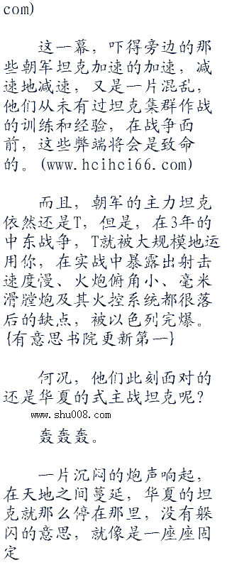 但是,似乎朝鲜的坦克集团指挥官并不擅长这种集团冲锋的战斗,行进之间,战斗阵型显得有些散乱,甚至,在通过一些狭长的地方的时候,还出现了堵车,撞车的事情。