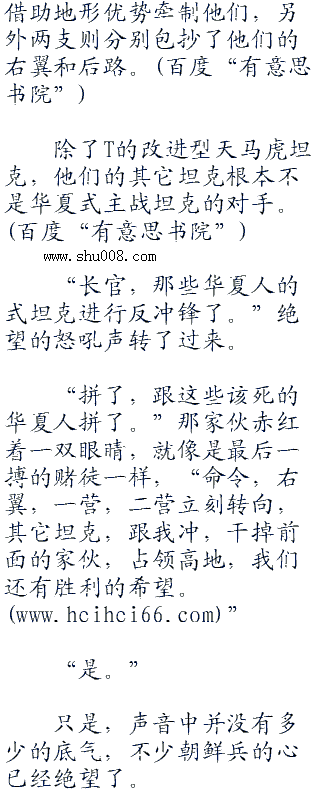 一切都在华夏的预料之中,突然转向的式主战坦克速度显然比那些朝军的t坦克更加快速,何况,那些家伙铁疙瘩正在爬坡呢。