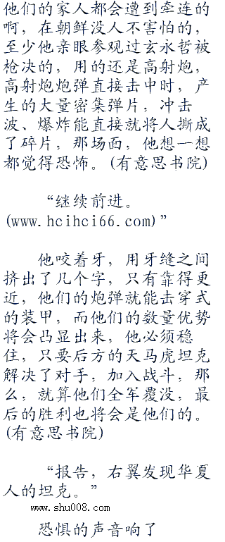 朝军坦克终于开炮了,毫米滑膛炮喷出了火焰,那些朝鲜兵一个个脸都涨红了,刚才距离不够,他们只能被动挨打,现在,他们终于可以让那些该死的华夏人见识一下他们的厉害了。