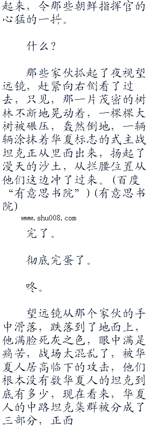 一辆辆a2坦克从夜幕中穿了出来,在凹凸不平的地面上快速前行,咚咚,哐当的撞击声不断地响起,颠簸地非常厉害,朝着朝军坦克集群的背心处穿插而去,一根根粗大的炮管散发着令人窒息的杀机,准备着爆掉朝鲜人的菊花。