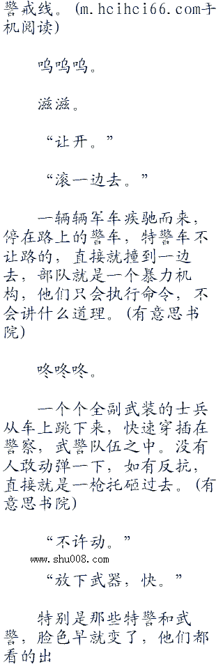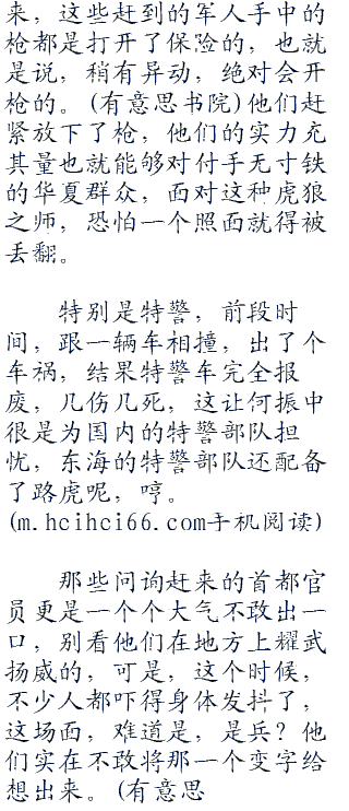 那些武警一个个脸色大变,可是,面对荷枪实弹的野战军,看着地面还在冒着热烟的弹孔,他们忍不住吞了吞口水,在向上级汇报之后,立刻撤走了,他们知道,出大事儿了,而且绝对不是他们能够插手的。杀气腾腾的野战军,头顶上的直升机编队,甚至还出现了战斗机的踪影,这绝对是不可想象的事情。