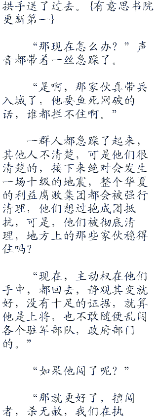 何振中现在没工夫去管这些家伙,如果他们犯了有罪,那么,接下来谁都逃不掉的。易天带着军情的人,国内的国安部队全都行动了起来,这段时间,全国上下,可是彻底清查了一遍,哼。