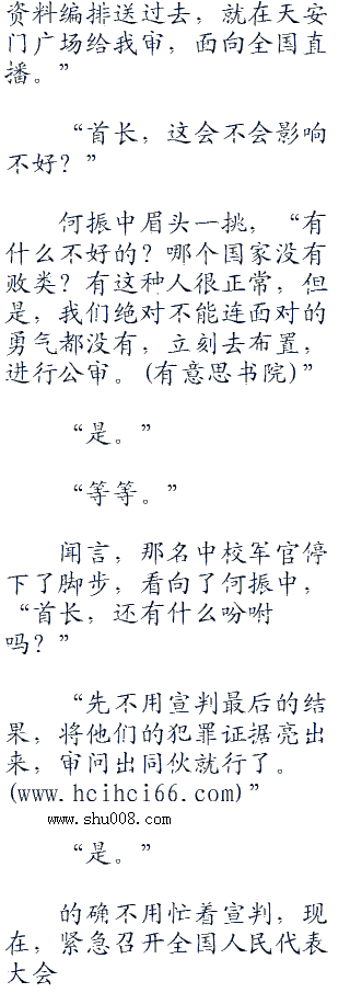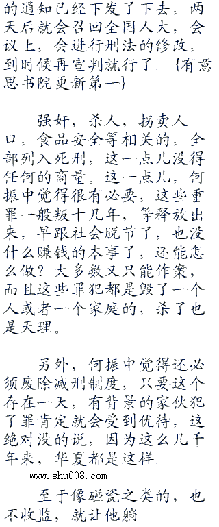 这个风声,的确是何振中放出来的,强奸女人算什么本事?而且,这些年,华夏的这种案件越来越多,甚至遭受毒手还有不少的小女孩儿,所以,适当修改一下刑法,是很有必要的。
