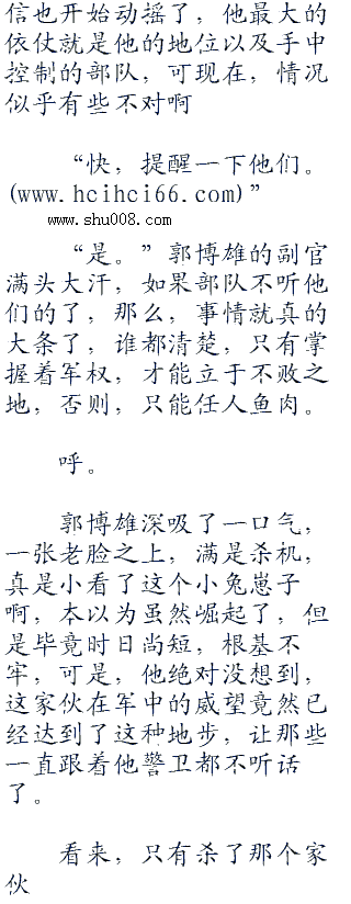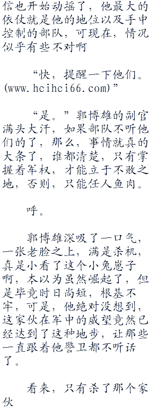 “怕什么。手机阅读更方便m..”郭博雄哼了一句,“我是军委副主席,军委班子排第一,他算个什么东西?增补进来的而已,他敢硬闯,就给我杀。”