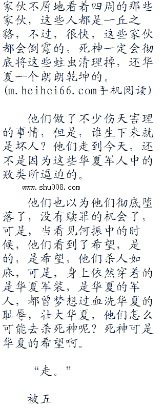 “第一,我们的确没那个实力杀掉死神,我们不能,这个世界估计也没人能够杀掉死神,因为,他是死神华夏最强的军人,没有之一。”那个领头的杀手嘴里喃喃,“是,我们是杀人无数,但是,那些人和你一样,都是一丘之貉罢了,可是,死神不一样,他是个真正的军人,他做的事情,全都是为了华夏。今天的华夏,灭了印尼,灭了越南,平定朝鲜半岛,小日本不敢招惹,美国人退避三舍,何其威武?这都是死神和他的部下用命