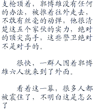 郭博雄脸色柔和了一些,这几个家伙是他手中最强的一支力量,这些年,暗中替他清理了不知道多少对手,搜集证据,暗杀,制造意外,威胁,绝对的超级高手。