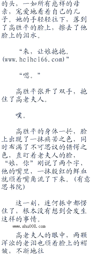 高老夫人眼中满是悲伤,痛苦之色,过了会儿,她才对着何振中说道:“来,扶