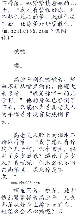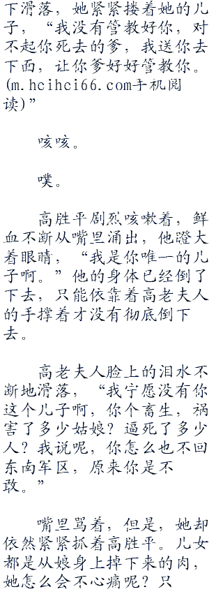 “妈,妈。”高胜平的确是怕了,一个快三十岁的少将就这么哭着,抱住了老太太的脚,抬着头,满含着希望地盯着她,“妈,你救我啊,我不想死啊,死了就没有人孝顺你了啊。”