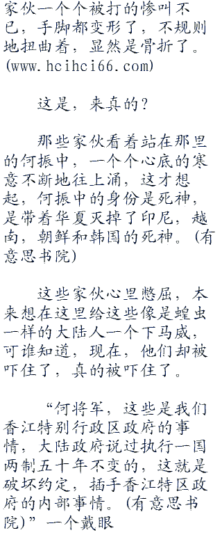 “何将军,你,这里是香江”一个香江政府官员怒吼了一声。