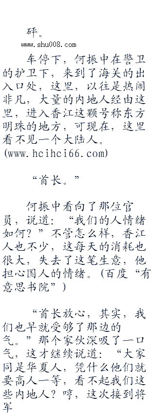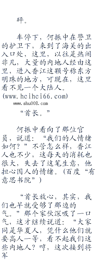 可惜,对于他们的愤怒和“五八三”憋屈,何振中等人并不感冒,径直登上军车,然后在警卫车辆的护卫下,朝着一江之隔的深圳海关方向而去。