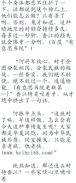“何将军,特区政府已经下令抓捕了所有支持港独的人,现在正在进行全城的搜捕。”特首用沙哑而疲惫的声音说道:“另外,特区政府已经在进行商讨,立法,以后将会对这种事情进行严加防范,一旦发现,绝不姑息。”
